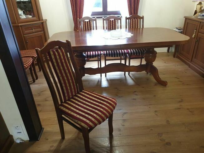 Mam do sprzedania stół + 12 krzeseł Wymiary 100 cm × 200 cm + dwie dokładki po 50 cm Stan uważam za bardzo ...