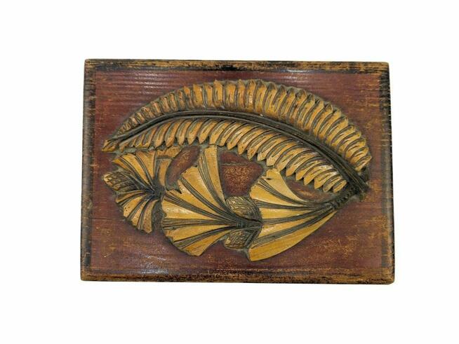Pudełko drewniane rzeźbione, brak cech producenta, jak i daty produkcji. Wymiary: 20cmx14cm, wysokość 7cm. Pudełko do ...