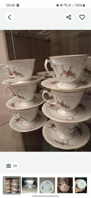 Posiadam do sprzedania piekny z lat 80/90 zestaw kawowy 6 filiżanek z cukiernicą zdobiony kwiatkami i złotym paskiem nie ...