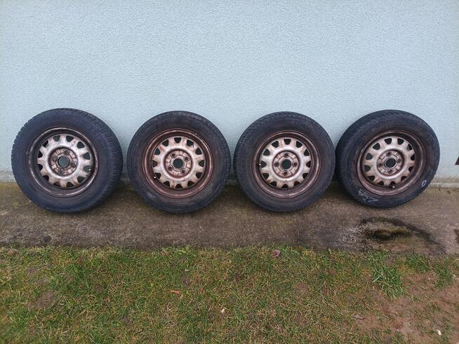 Sprzedam cztery felgi stalowe średnica 15cal szerokosc6.5J rostaw śrub 5x112 otwór centrujący 57.1 razem z oponami za ...