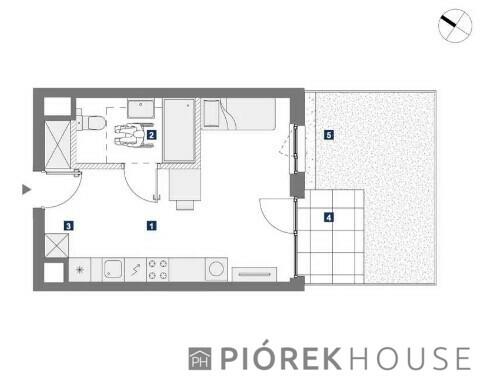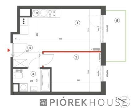 Mieszkanie o powierzchni 42,5 mkw składa się z holu dzielącego wejście od części dziennej wysoką wbudowaną donicą w ...