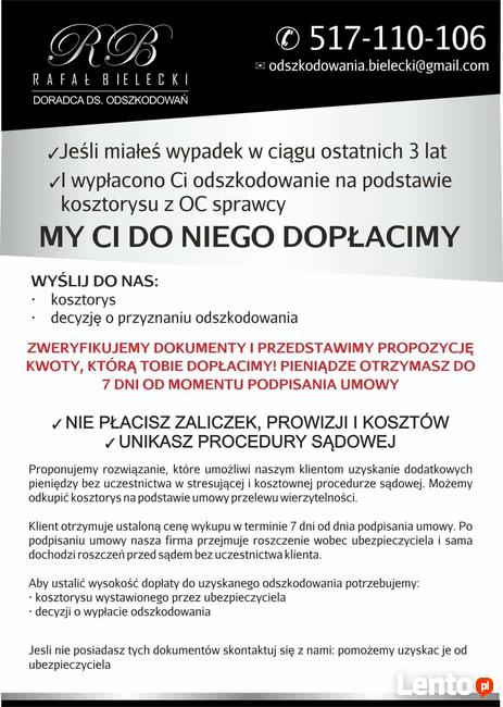 Witam oferuje pomoc w likwidacji szkód komunikacyjnych i pomagam osobom które zostały poszkodowane w nie uczciwej walce z ...